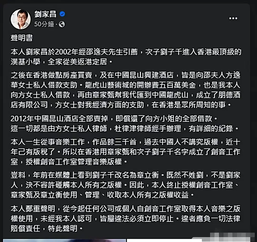 刘家昌对儿子刘子千的音乐事业非常支持,他不仅亲自为儿子创作歌曲,还担任了儿子音乐专辑的制作人。刘家昌还曾在公开场合称赞儿子的音乐才华,称他是“天才音乐人”。