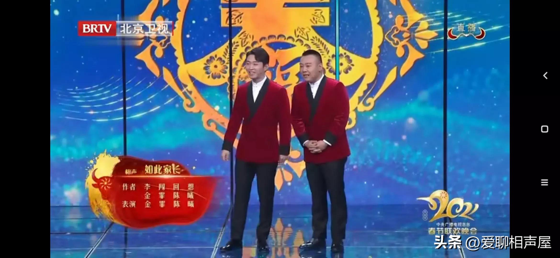 时间到了2021年,这一年春晚相声节目就有三段,岳云鹏孙越的是《年三十的歌》,金霏陈曦的是《如此家长》,李寅飞叶蓬飞的传统段子《叫卖》。