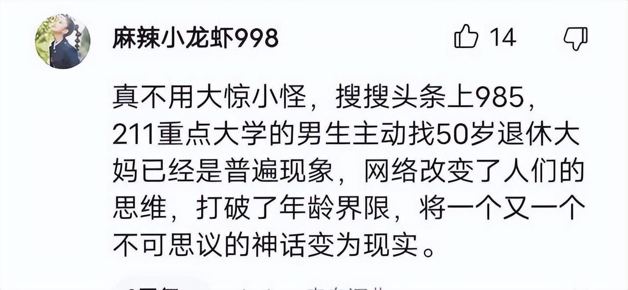 虽然很多人都在吐槽这俩大学生是真的不挑啊,什么人也下得去嘴。但是这样的事情已经越来越多,先有买超婚内出轨女大学生,后有蒋雯丽包养男大学生。再这样下去,大学生在社会生不再是被人尊重的存在,而是被鄙视的存在,一说大学生,大家不会觉得他们会为国家做出什么建设,全都是“被包养”!