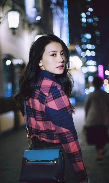 再来一个回眸照,你学会了吗?深蓝和玫红格子衬衣在黑夜里显得格外显眼,记住包包配饰也要有相同元素哦。