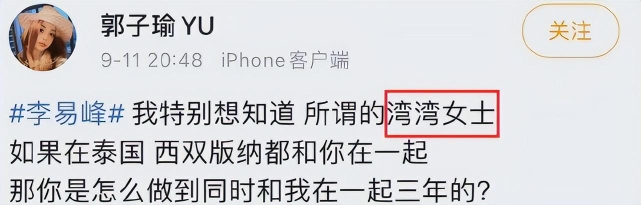 后来,网民扒出胡湾自曝约会对象“54先生”(生日)正是男星李易峰,她是通过好友李胜利共享朋友圈,包括王嘉尔、秦奋等男星,私下“玩很大”。尽管胡湾与李易峰同游苏梅岛、一起跨年,甚至郭子瑜都声称二人在一起3年,但李易峰从未给予名分,女方被质疑只是PY!