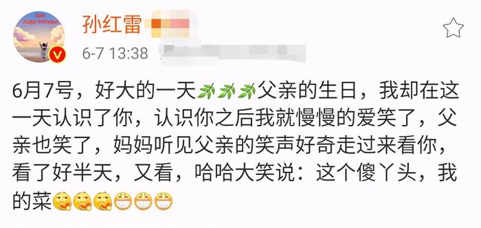 孙红雷也曾发文回忆和妻子相识的过程,给大家分享女儿的成长过程。两人的感情虽然没有多么轰轰烈烈,但是在他们分享的生活点滴中却足以窥到这一家人的幸福,希望两人能一直如此甜蜜恩爱下去。