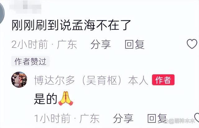 好友吴育枢也在孟海去世的评论区承认死讯,并祈福。