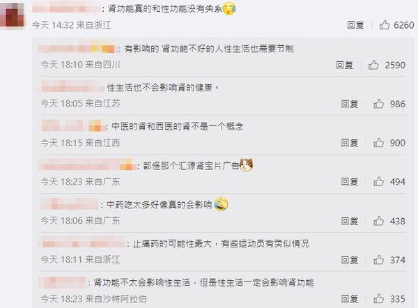 这段节目影片如今又被翻出,部分网友挖苦「肾不好还能找那么多女人?」、「这是要自黑洗白吗?已经看到好多说他肾不好所以出不了轨的人了」;但也有人解释「中医的肾和西医的肾不是同一个概念」、「西医的肾跟性功能没任何关系」、「如果他真的长期吃止痛药,肾功能异常是很有可能的」,认为不需要把健康问题跟出轨风波扯在一起讨论。