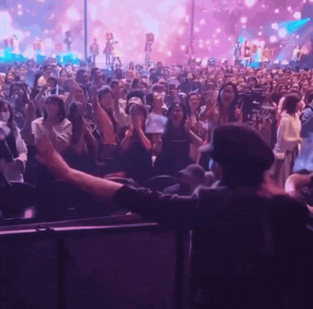 在他的演唱会上,她兴奋舞动,与丈夫雀跃击掌。