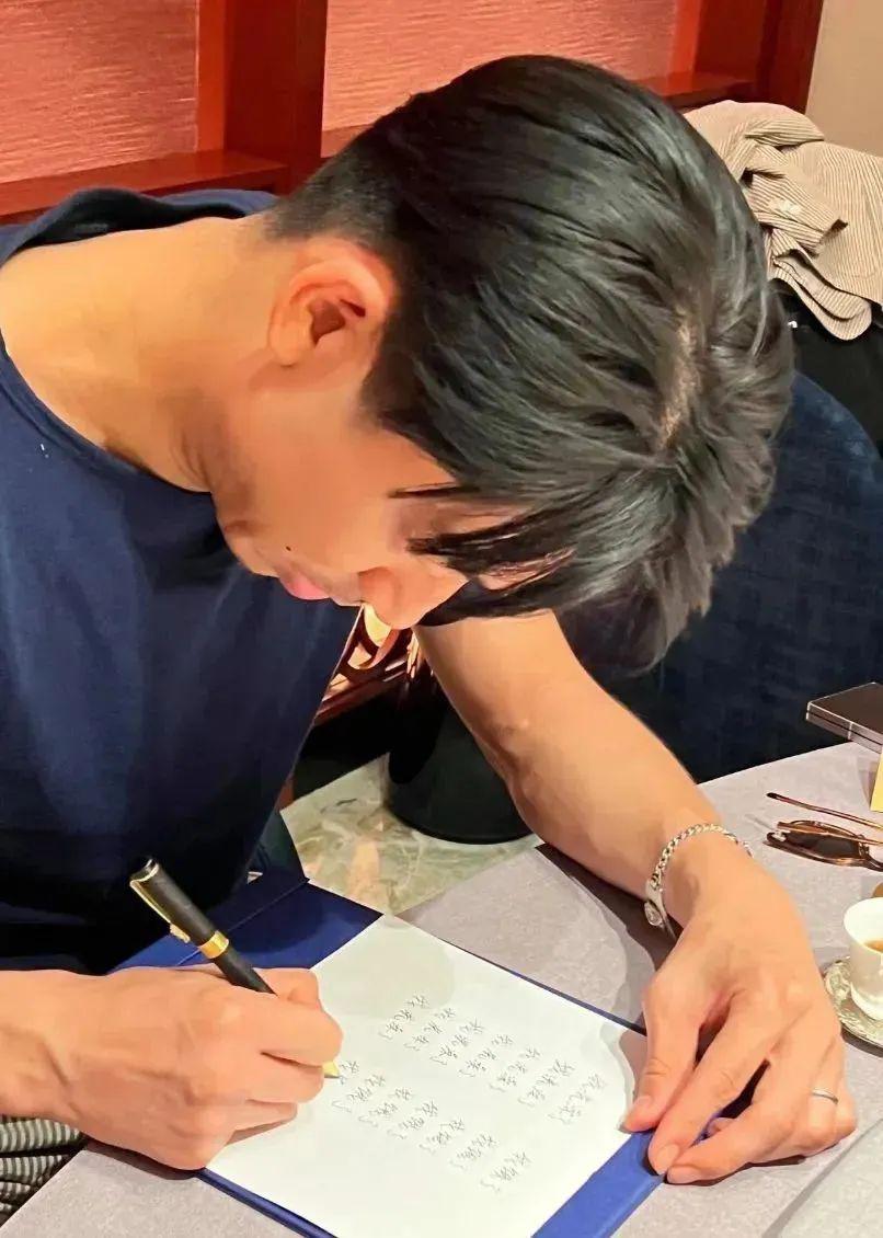像个小学生一样,一笔一画学写汉字,认真的样子令人忍俊不禁。