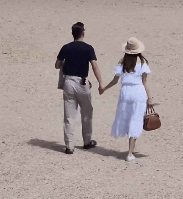 在法国时,他们牵手走路。