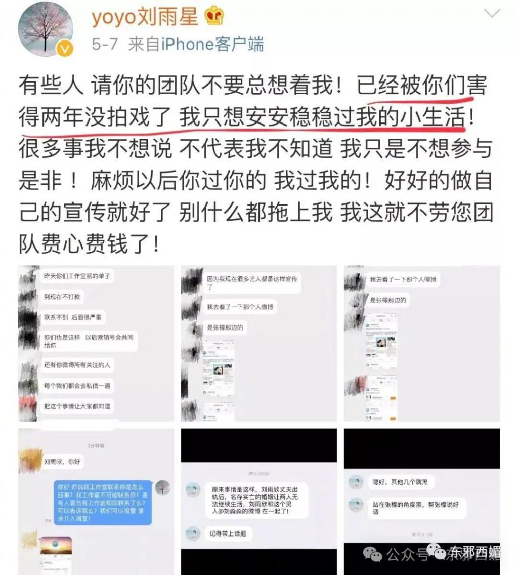 直到 2025 年,刘雨欣突然发微博手撕张檬。