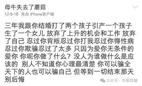 然而这种牺牲换来的只是痛苦。她小号中记录了隐婚期间两次打胎、一次引产、还被家暴遭劈腿等悲惨遭遇。