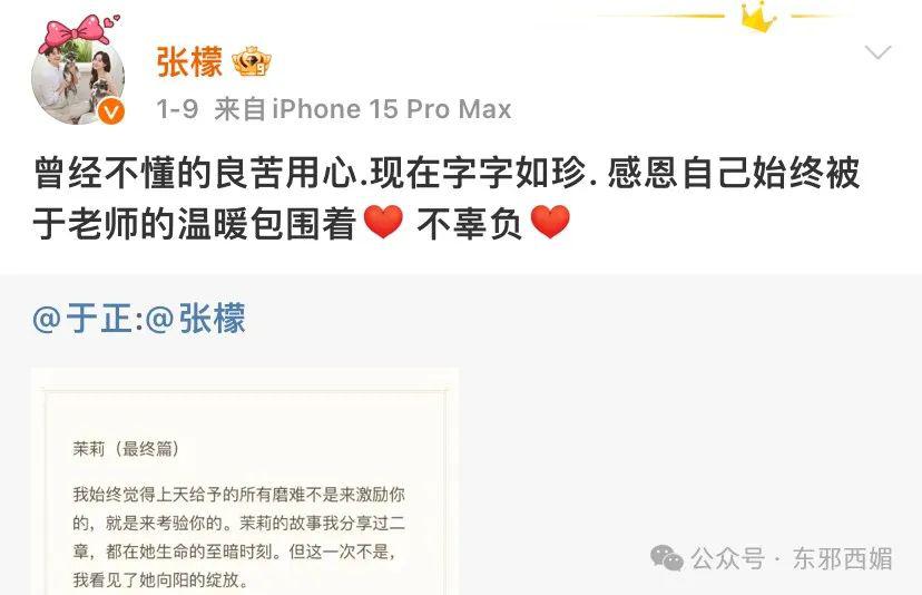 张檬收获了刘雨欣发出的宽恕文后,秒删道歉。两年后她上综艺试水复出,又发微博道歉再炒一把,同时贴上了刘雨欣那篇文字。