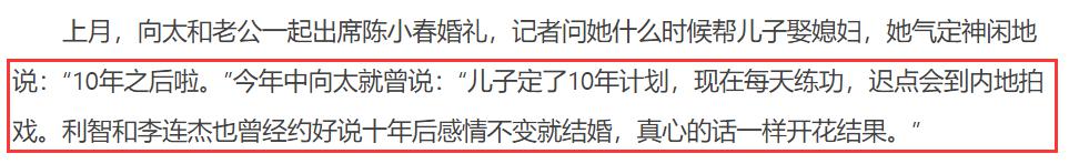 真要谈到结婚这类根本问题,向太放话:等十年之后吧。