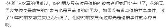 虽然施暴的不是龙俊亨这位前任,但曾经相爱的女友因为性暴力饱受折磨最终抑郁而死,自己却参与非法聊天室...他也因此遭到群嘲,多年积累的口碑一落千丈。
