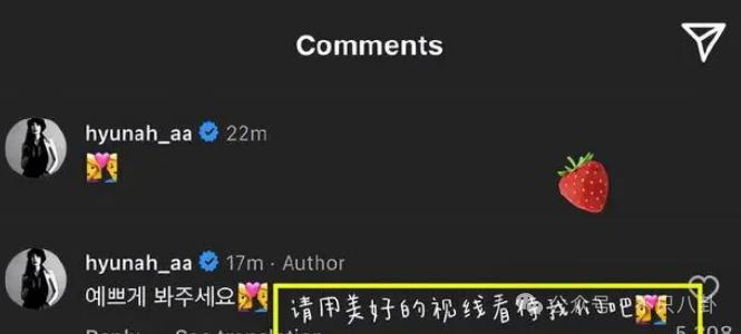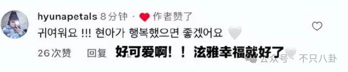 泫雅还在评论区留言"请用美好的视线看待我们吧"(请多多关照),后面再次配了一个爱心的表情包↓