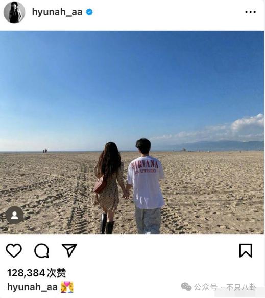昨天,泫雅在社交账号上上传了与龙俊亨的牵手照,还配了个【❤️】表情↓