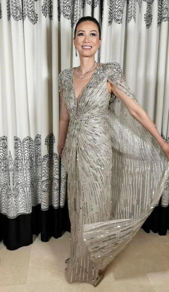 身披银色太空战袍的她,被网友直接拿来与特能折腾爱显摆的老板娘桑切斯 PK,说她完胜精心打扮、光是一条裙子上的施华洛世奇水钻就缝了 800 个小时的桑切斯。