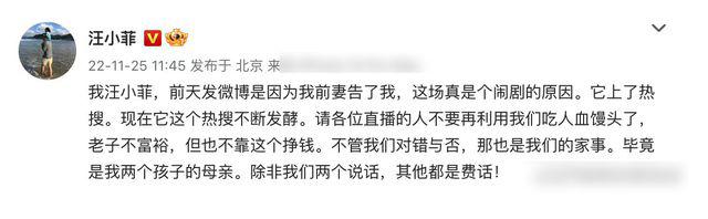 " 各位直播的人不要再利用我们吃人血馒头了,毕竟是我两个孩子的母亲,除非我们两个说话,其他的都是废话 "