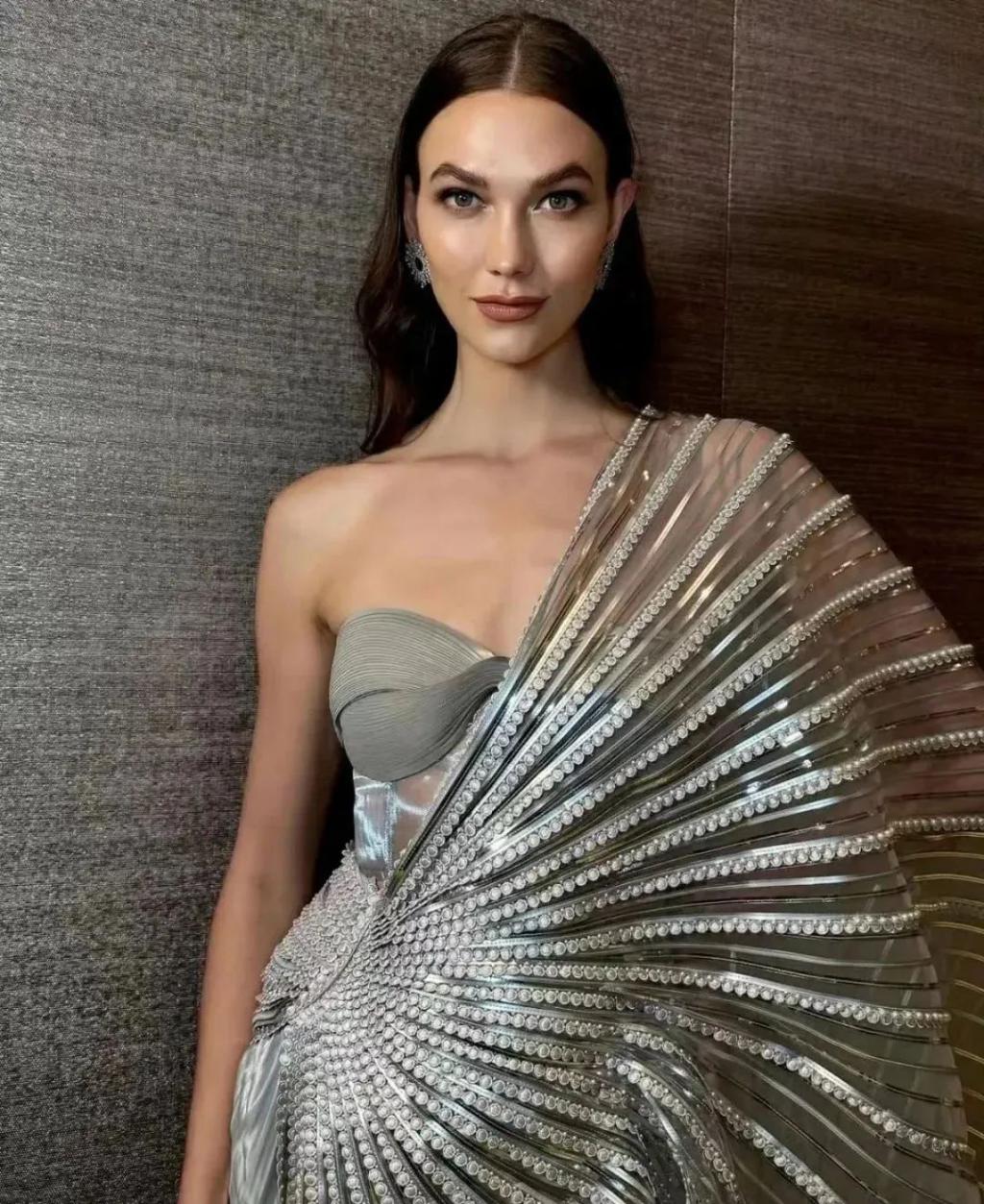 我最喜欢的还有这条灵感像是来自Paco Rabanne改良版金属链条礼服,上面装饰了20000多颗施华洛世奇水晶,甩起来的不只是自信美丽,还有金钱の力。