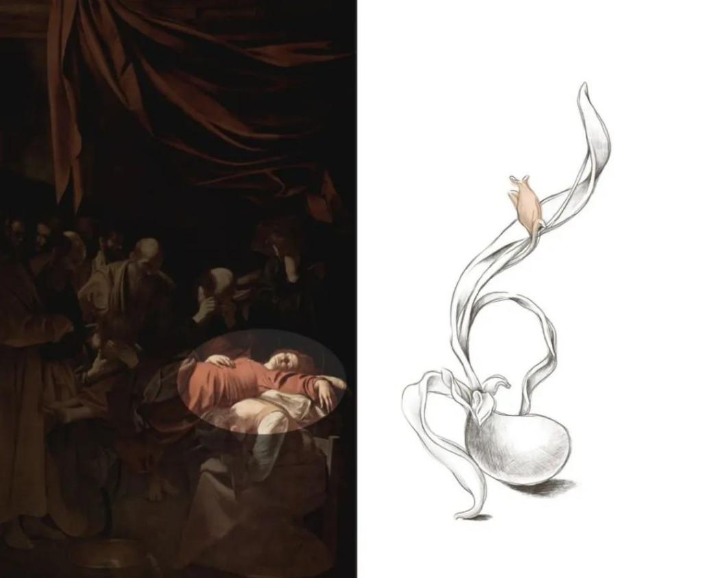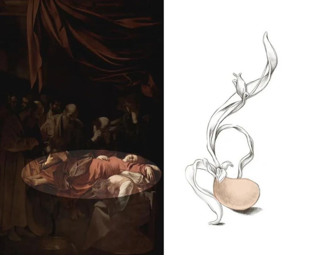 作品的创作灵感来自文艺复兴时期意大利著名画家卡拉瓦乔的名作《圣母之死》。