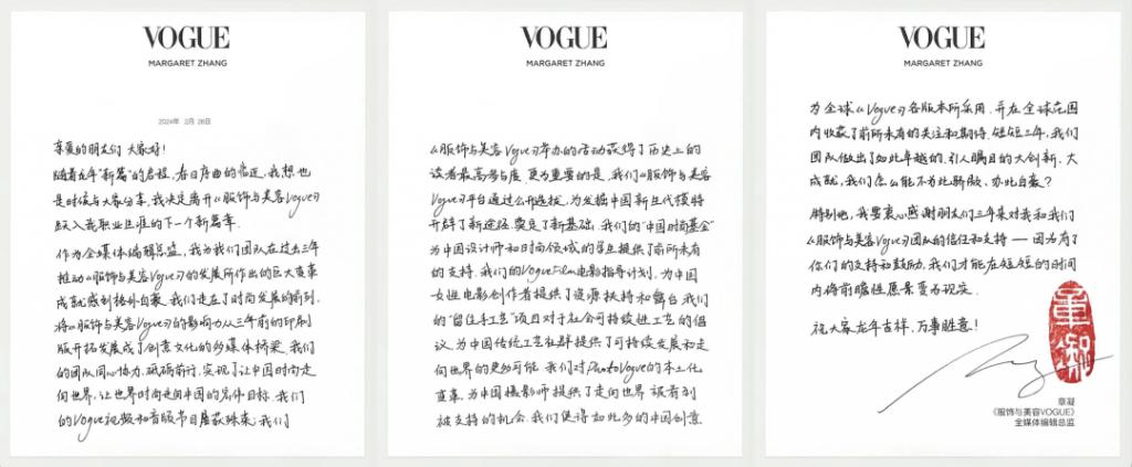 我仔细读了,总结如下:我找到新工作了。我在《Vogue China》有188项成就,贡献巨大。谢谢大家。