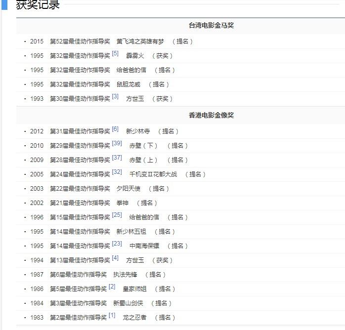 作为动作指导,他获得过14次金像奖提名,5次金马奖提名,全都是经典大片。