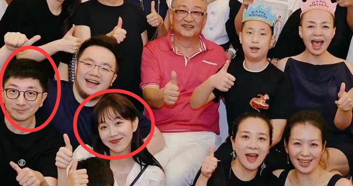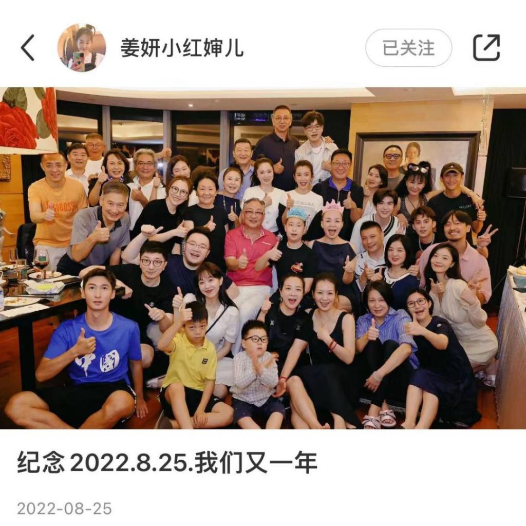 在 2025 年给宋丹丹庆生的合照里,姜妍旁边的这位戴着黑框眼镜、穿着黑色上衣的男子,就是姜妍的丈夫。