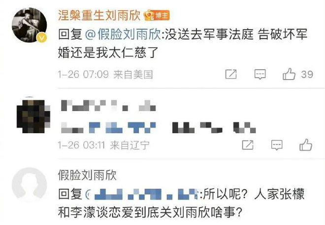 当年张檬很火的时候,破坏了刘雨欣的家庭(那会儿刘雨欣还是军人),