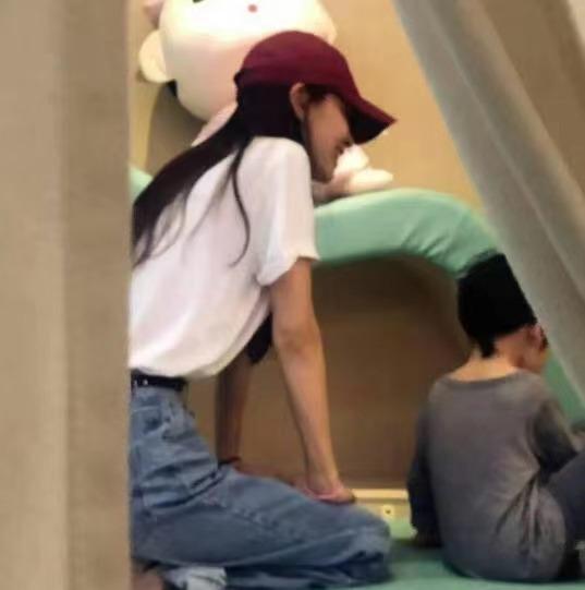 杨颖和小海绵的打扮也十分低调,画面里她头戴白色棒球帽,披着长发,身穿牛仔棒球衣搭配连帽卫衣,裤子穿得很宽松,整体既慵懒又极具时尚感。