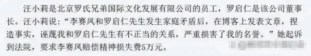 面对罗启仁的控诉,李赛凤也不甘示弱,她发表了4000字长文,控诉丈夫出轨在先,和汪小莉早就勾搭上了。