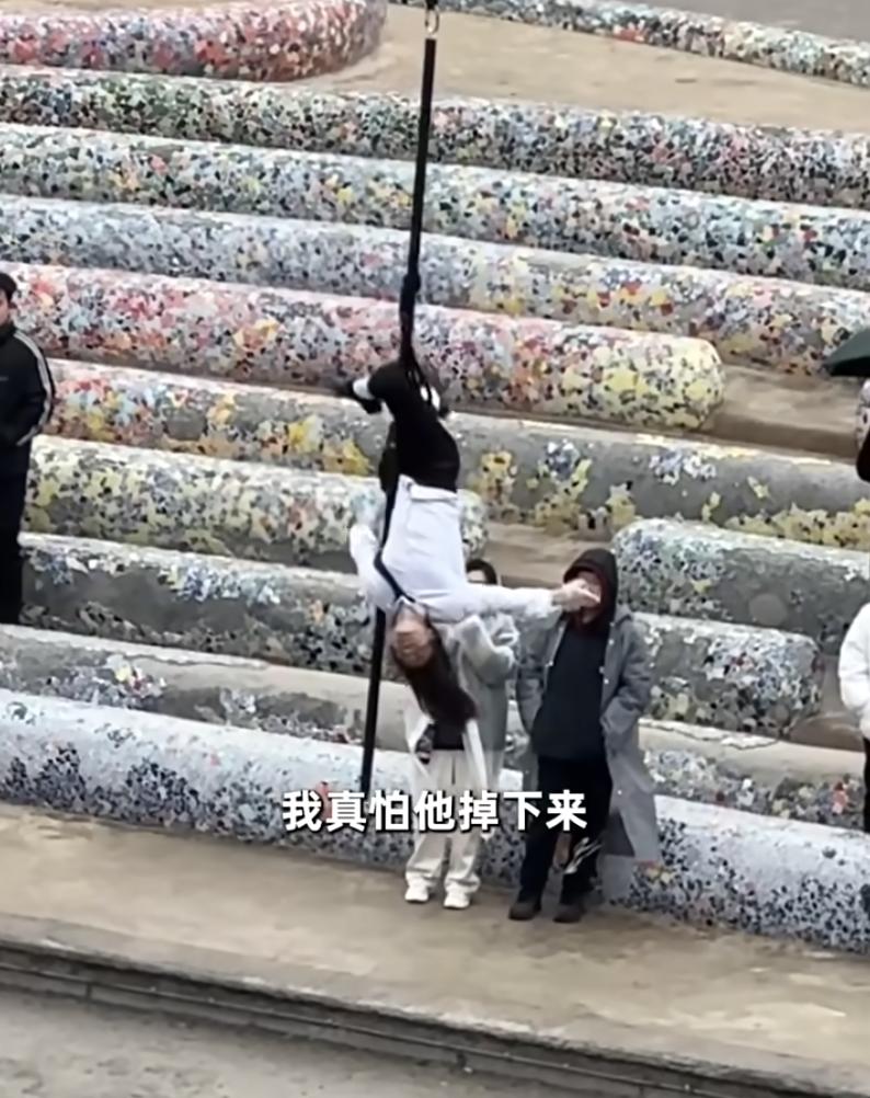 寒风中,单衣的演员跳钢管舞,观众悬着心,生怕他冻僵了,一头从钢管上栽下去。