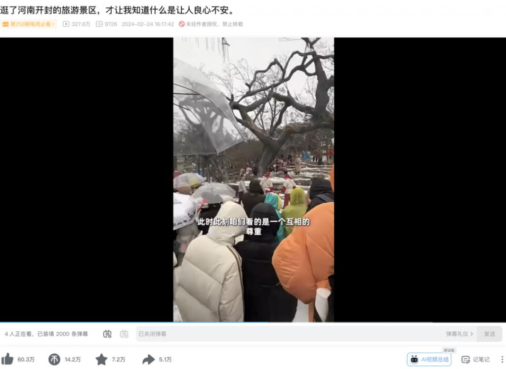 于是才有了那个视频标题,《逛了河南开封的旅游景区,才让我知道什么是让人良心不安》。
