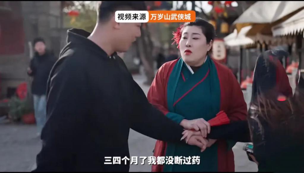 一开始,她只带着武大郎、西门庆在城里晃晃,互动十分钟,后来有个年轻人突然跟她说,干娘,我是真没对象。
