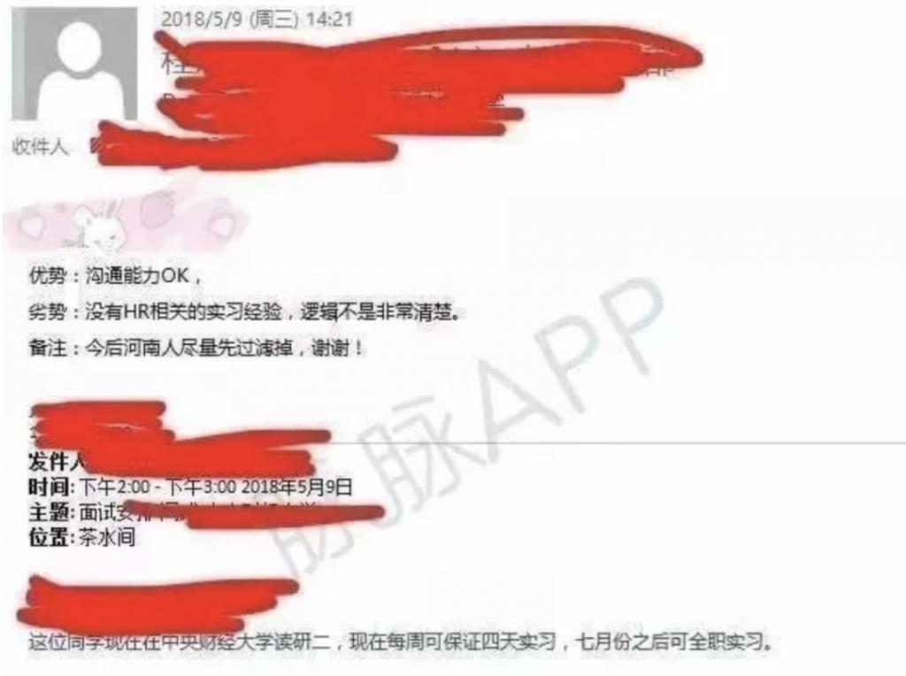 2025年5月10日晚间,微博账号@500强校园招聘曝光了一封爱奇艺的内部邮件,邮件显示,该员工在面试一位在校学生后,备注称"今后河南人尽量先过滤掉"。
