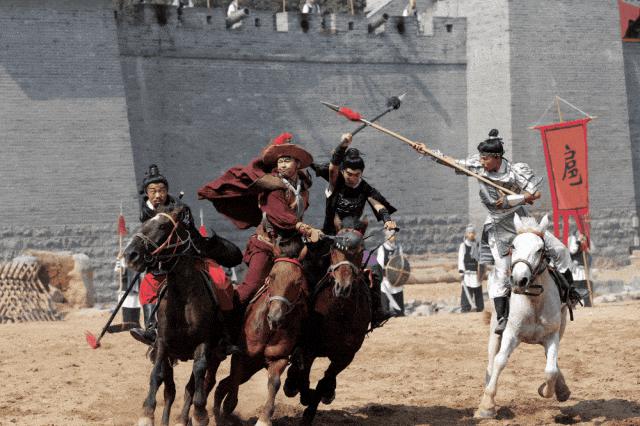 《三打祝家庄》,宋江骑在马上,一会飞身一会倒挂,和敌人耍红缨枪,实打实的对战,稍有不慎就能血溅当场。就连马都身怀绝技,说倒就倒,让死就死。