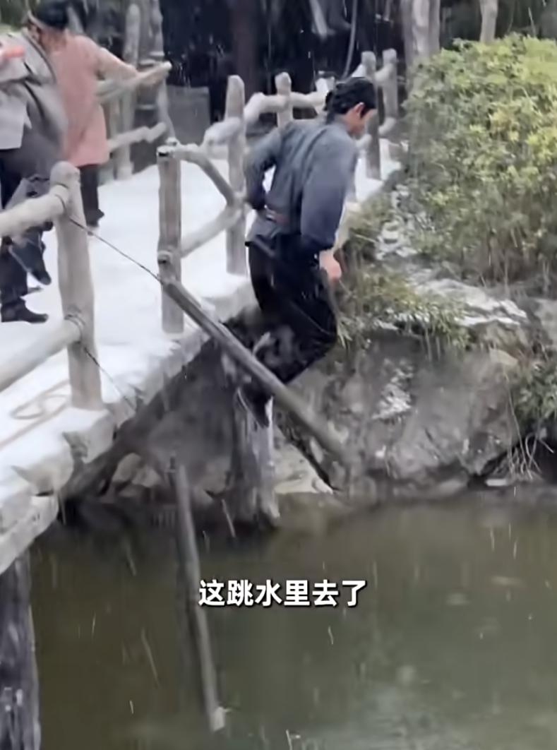 up还来不及感叹演员敬业,就眼睁睁看着表演《飞云浦》小剧场的演员,在剧情中被一个横踢,直接掉进水里。而上岸的演员只是淡淡一笑:"不冷,水结冰我也下去过。"