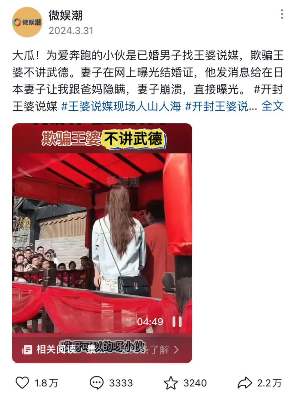 其实,王婆最近的节目被爆出不少"骗婚乌龙"。没办法,她是媒婆,不是神婆。