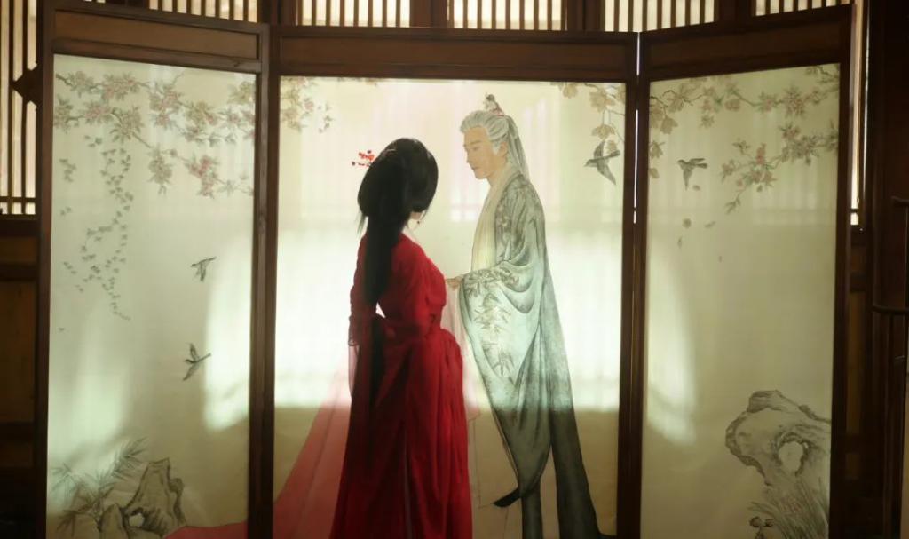 出场时回眸的这一瞬间,身影和屏风上的画中人一重合,真配得上那句: