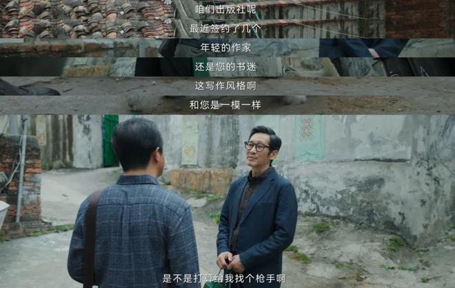 台词中提及「年轻作家和您的写作风格一模一样」「枪手」。