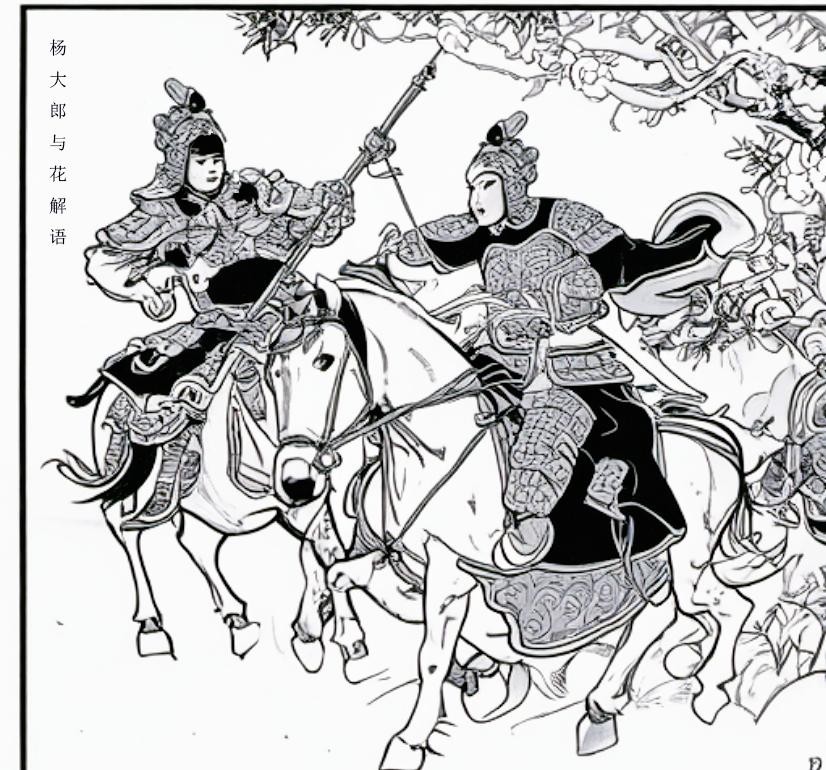 不久,两人路经山寨前的演武场。花解语灵机一动,要试一下杨大郎的武艺,于是她说:“素闻杨家枪厉害无比,我想与杨公子比试一番,不知能否答应小女的这个请求?”