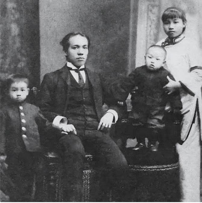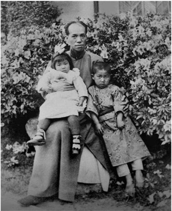 青年梁启超和子女