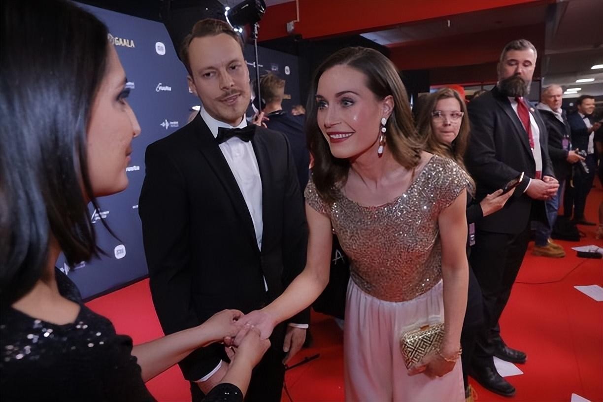 芬兰37岁女总理高调出街,化烟熏妆着红裙变艳女郎,帅老公很般配