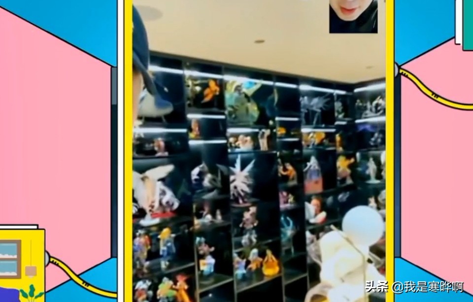 连线中黄子韬还专门展示了家里的玩具,先是一整柜子的熊,各种颜色,再就是各种手办和游戏中的人物,后面的整个玻璃柜全是摆放的各种玩具。