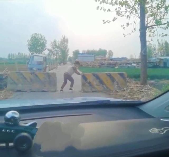 蚂蚁撼树?山东一男子开车遇限宽无法通行,妻子竟欲挪动千斤路障