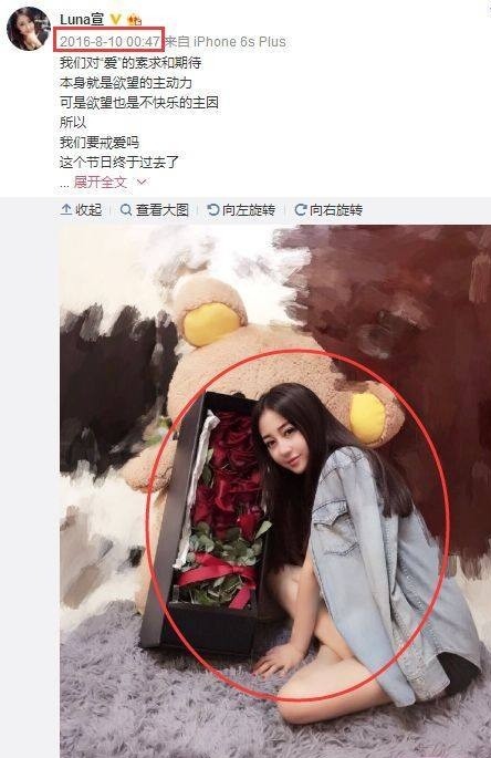 2017年6月,Luna宣云晒玩具手枪,潘玮柏也有同款,且背景相似;