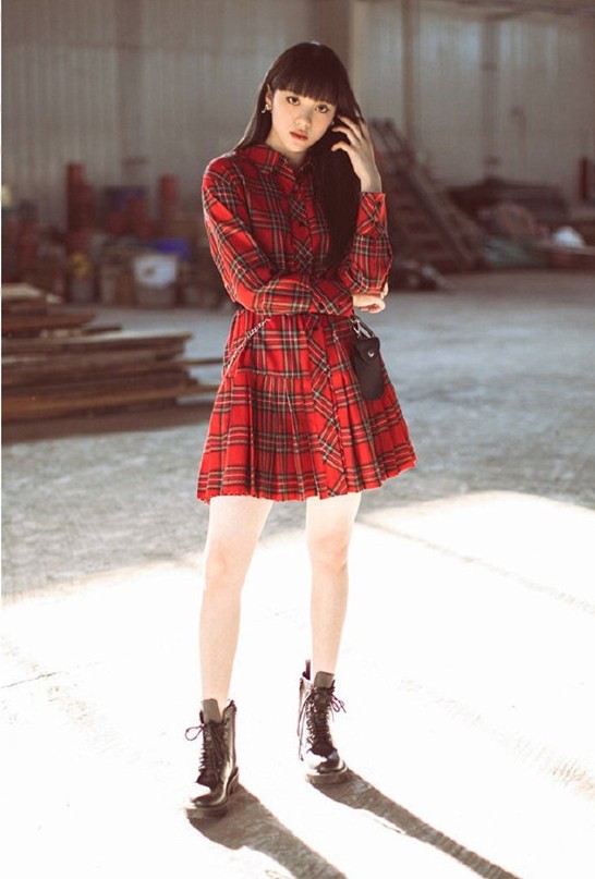 深色系的苏格兰格纹总是给人一种厚重感,清新的夏日还是选择一些艳丽的颜色吧。像红色的格纹就很不错,本身就很优雅大气的苏格兰格纹将女性的气质塑造的很是贴切。再加上衬衫款式的连衣裙本身就很有正式的通勤感,很是有酷炫感觉。像欧阳娜娜这次就选择了一条红黑格纹的连衣裙,时尚还很有绅士英伦风。