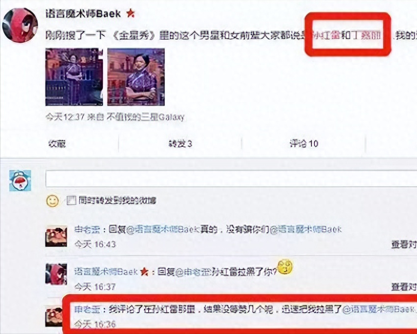 甚至将留言此事的网友全都拉黑,还和金星在网络上针锋相对,