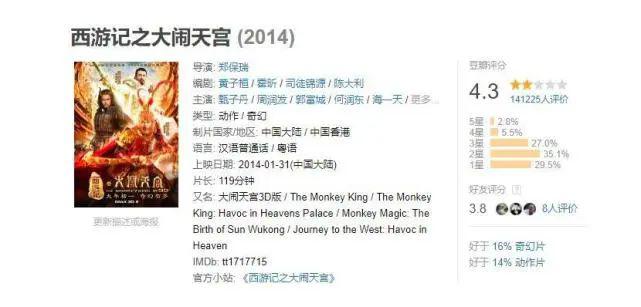 2014 年的《西游记大闹天宫》,让孙悟空跟小狐狸牵起了尾巴,铁扇公主成了玉皇大帝的妹妹不说,关键是人物智商集体掉线,雷人台词更是让人想捂脸。