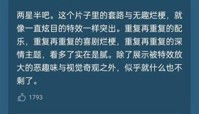至于喜剧元素,还不如梁咏琪的造型搞笑,真从头尬到尾。