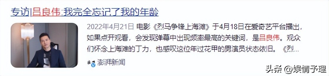 而吕良伟也依然活跃在影视圈里,奔走在他所热爱的演艺事业上。