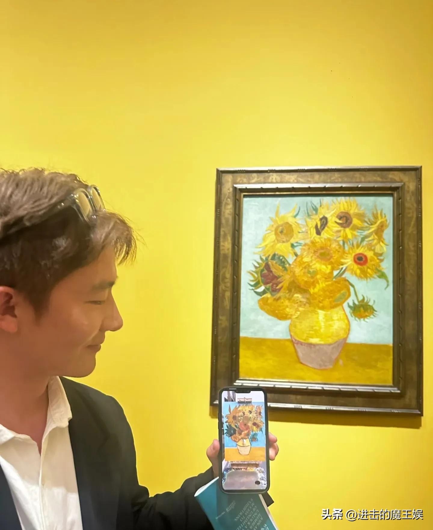 还特意晒出了与梵高真迹的合影,艺术气息直接拉满。