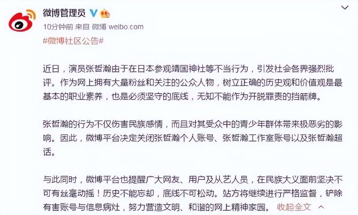 2018年,张哲瀚发布的朋友圈引发了轩然大波,网友发现背后房子竟然是靖国神社,遭到了全网的辱骂。